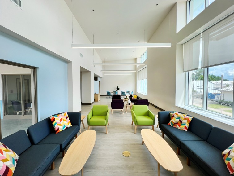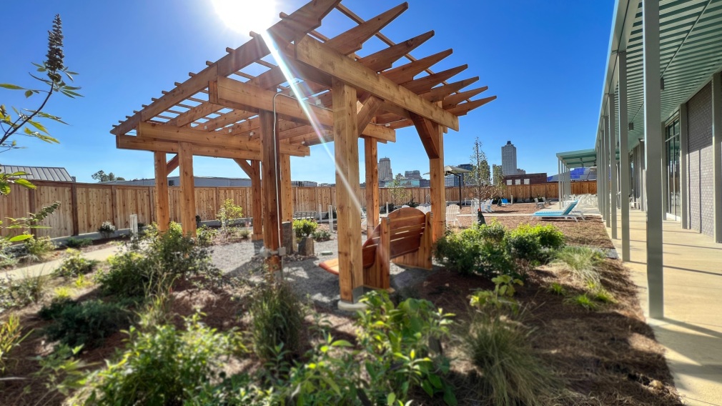 The Hospitality Hub in downtown Memphis features the region's first barrier-free women and children's shelter, providing immediate stability and a place to heal for the city's homeless population. Featuring calming outdoor spaces, community rooms for visitors to relax, and twenty private rooms each equipped with a TV, the Hub connects individuals with much-needed stabilizing resources. Throughout construction, the Turner team felt the community impact of this important project and what it means for the city of Memphis. "A lot of times, projects are monetarily driven," said Project Manager Armando Longoria. "Hospitality Hub is different. There's a bigger message here." It's given the team the opportunity to give back as well. They've spent time handing out blankets to the surrounding community, and for Turner's Founder's Day, helped with landscaping for the Hub building.