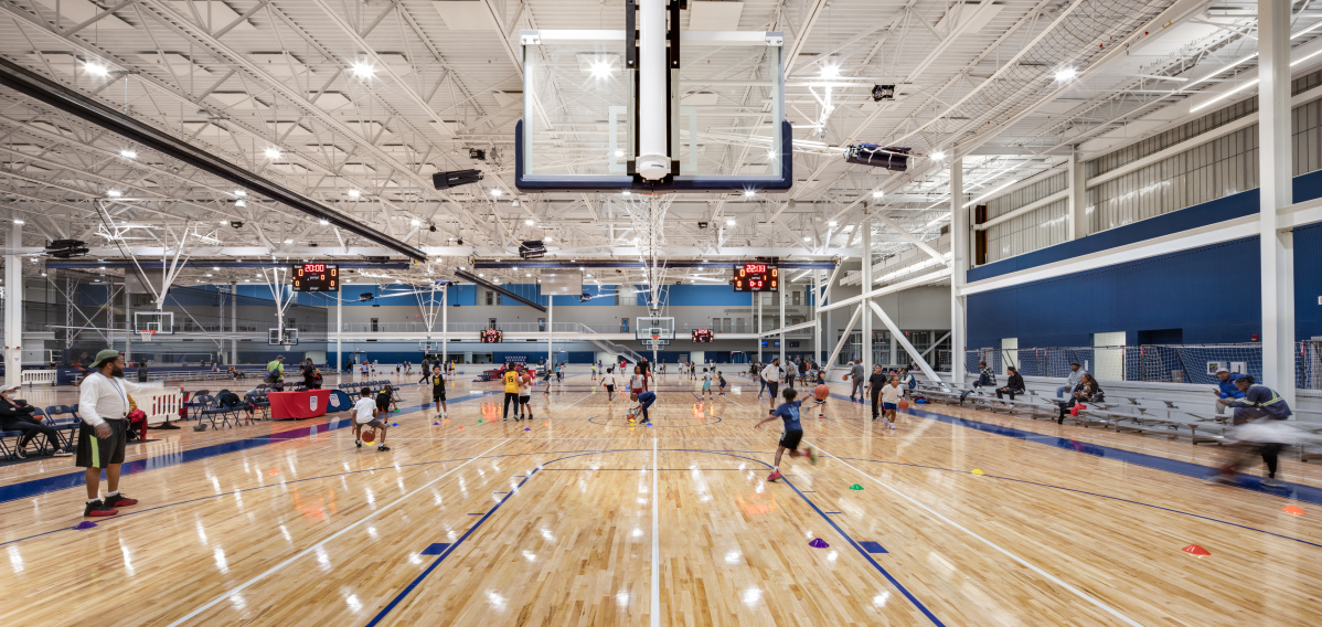 Housed on the site of the Liberty Land amusement park in Memphis, the Sports and Events Center at Liberty Park is the premier venue for youth sports and entertainment, and the first facility as part of a mixed-use development on the campus. Comprising two venues, the facility features a banked indoor track, eight basketball courts, sixteen volleyball courts, and 75,000 sq. ft. of column-free space to be used for tournaments and expos.